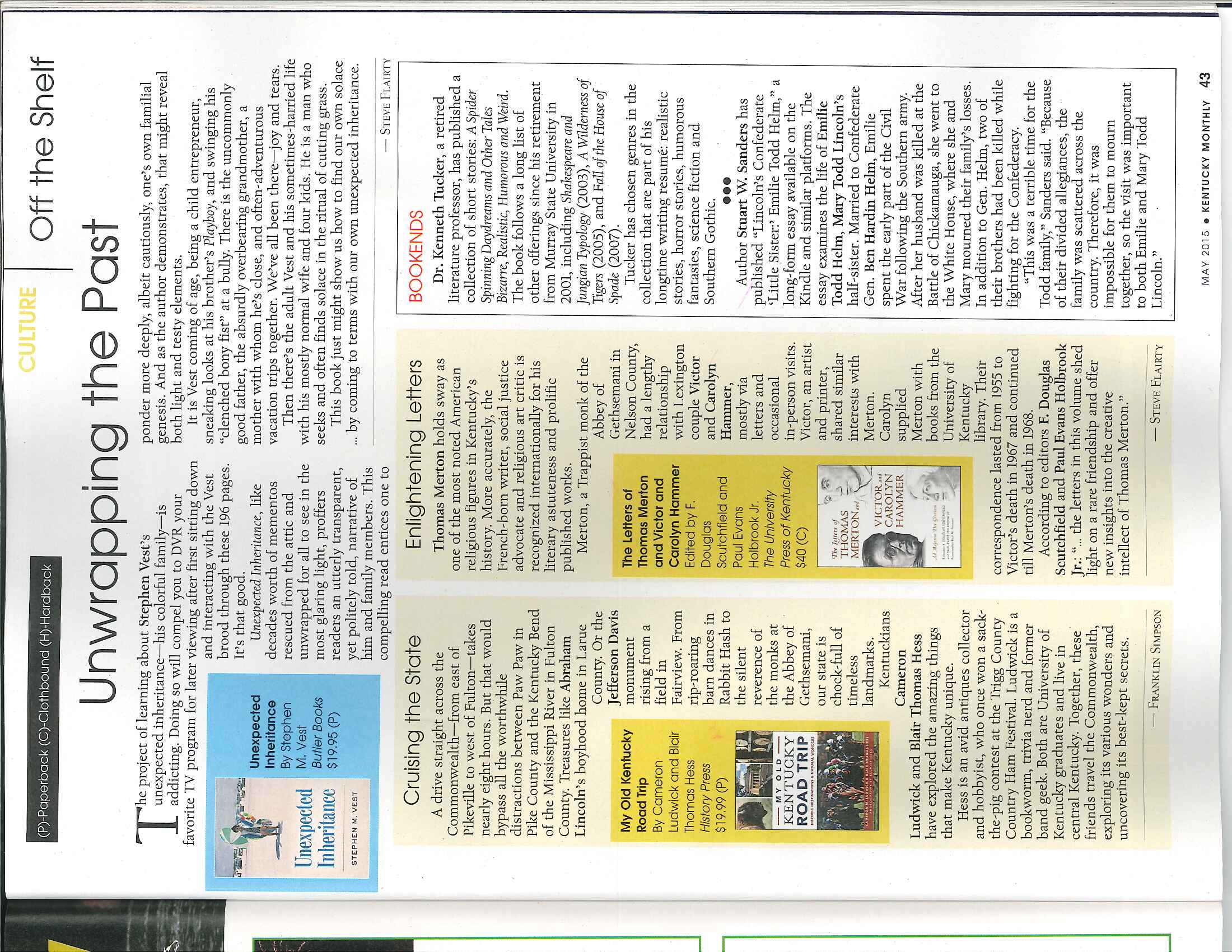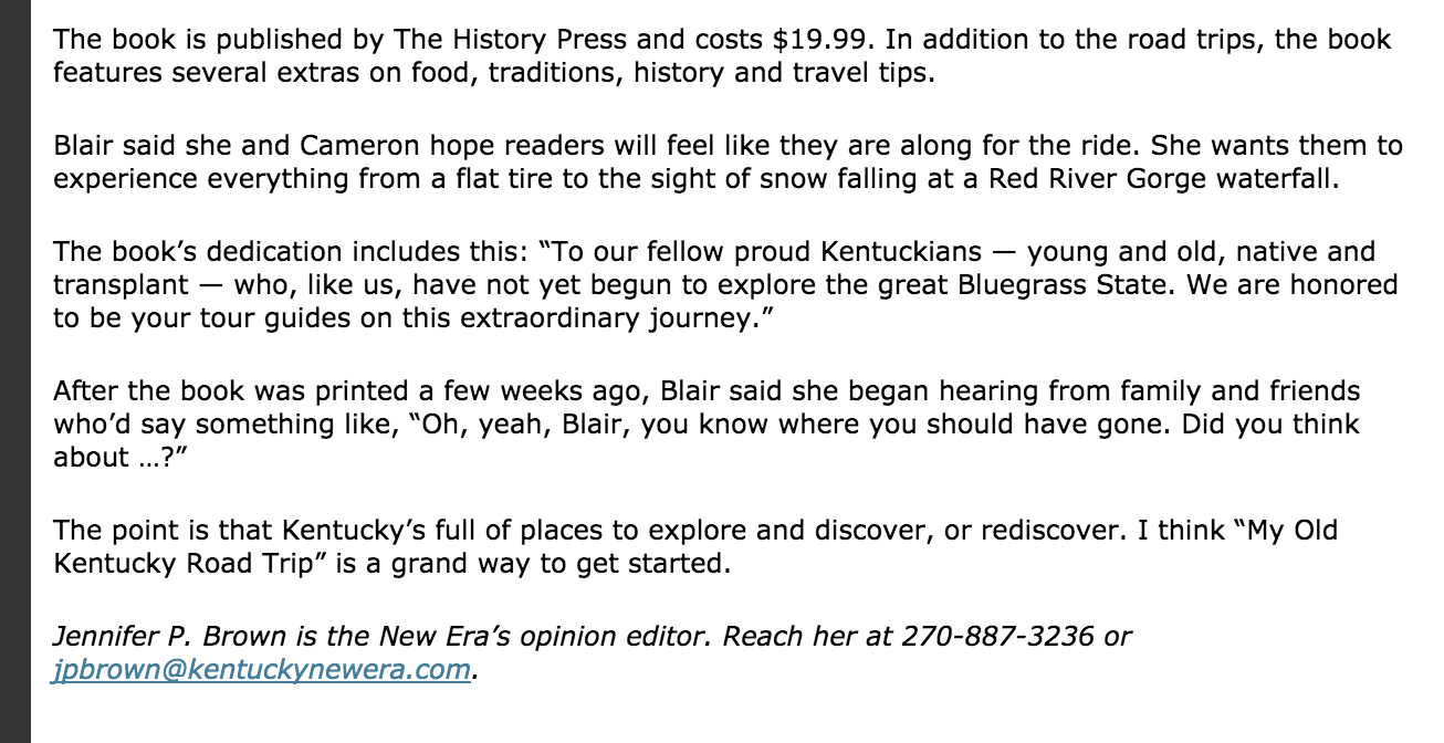 In the News One to One with Bill Goodman on KET Lexington’s Channel 36 @ Noon Kentucky New Era Kentucky Monthly Signings and Appearances Morris Book Shop, Lexington, Ky. A Reader’s Corner, Louisville, Ky.